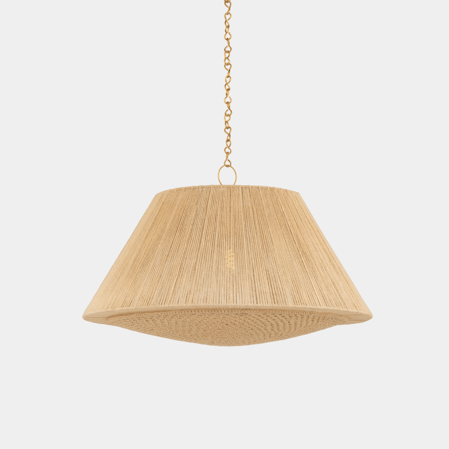 Woven in different patterns and directions, the fine details of Mystic create a compelling display of craftsmanship. The side walls feature a traditional vertical string construction, while the lower surface has been constructed using a decorative crochet technique. The dyed jute fibers lend an air of natural softness, making this pendant perfect for eclectic or coastal design themes. Mystic is available in two sizes.